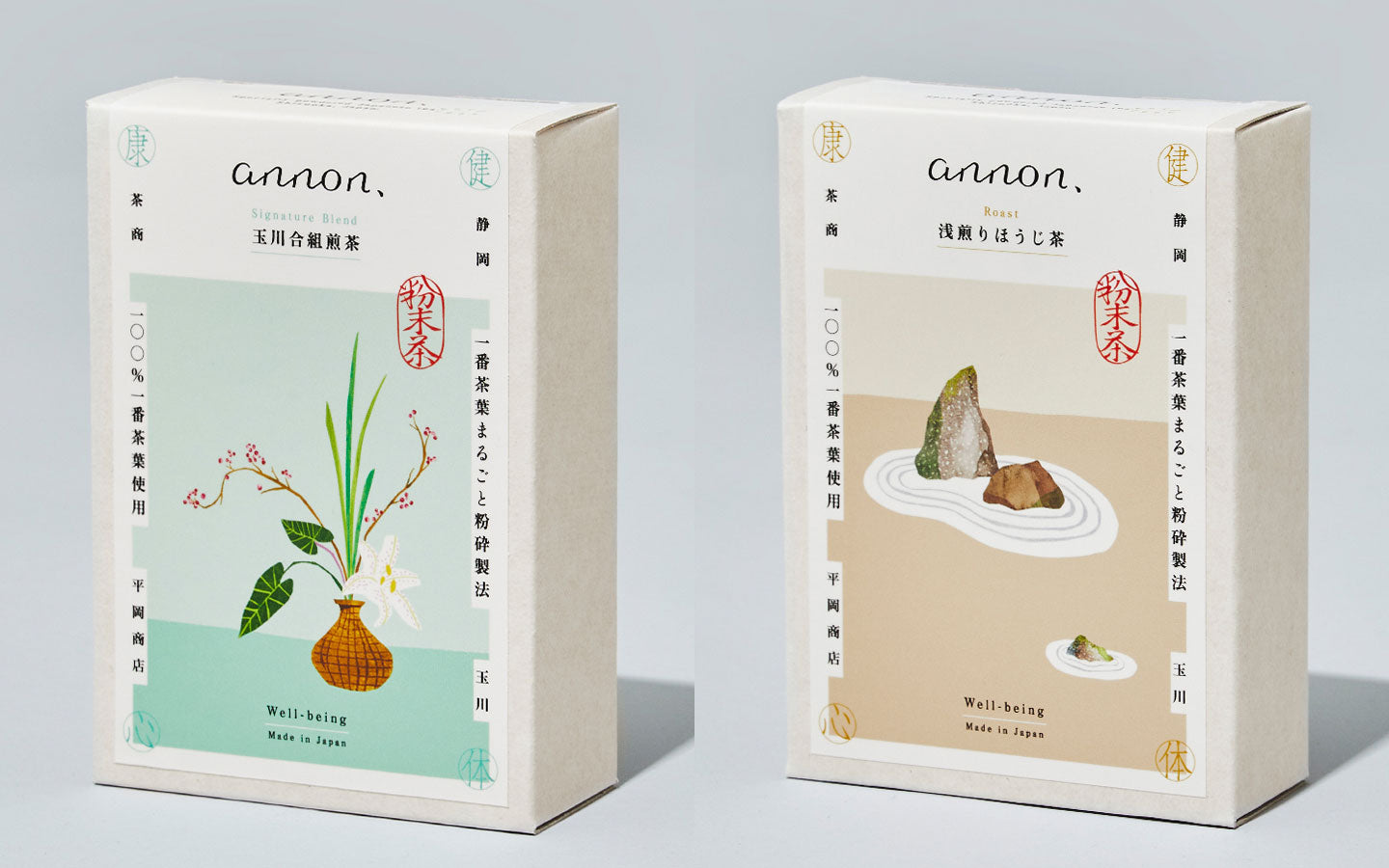 annonを代表する合組(ブレンド)煎茶と一番茶を丁寧に浅煎り焙煎したほうじ茶をお楽しみいただけます。